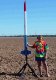 Next up was my scratch built (from Dynacom parts) 5.5 inch all fiberglass "Unshredable", powered by an Aerotech 98mm L952. This was flight number 9 for the trusty Dynacom. Liftoff was very slow for the heavy rocket, but with the calm winds it remained almost vertical and reached a maximum velocity of 827 feet/second at 7.5 seconds after liftoff. Max altitude of 9212 feet was reached 25 seconds after liftoff where the rocket began a slow descent under an 18 inch drogue chute. At 750 feet the main charge fired, cutting the shear pins and ejecting the nose. Unfortunately, for the first time in 9 flights, the main chute did not clear the airframe and the rocket landed under drogue only. Fortunately, the soft ground prevented any damage to the rocket. Next time....MORE POWDER!