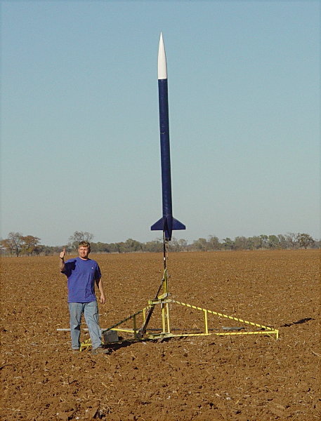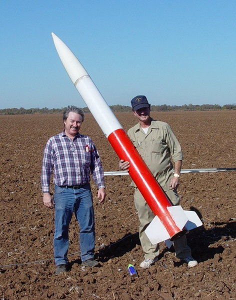 There just aren't that many GREAT rocket flying fields in Texas; DARS has a great site at Windom and POTROCS has a great site outside Amarillo. Well, add another great site to the list, the HOTROCS (Heart of Texas) site south of Waco. With over 5,000 acres of black dirt (in the winter, anyway), and an 11,000 foot wavier, the site is superb for flying a recovering. The second launch at this site took place Saturday, November 21st, 2002. Conditions were good; skies were clear and temperatures were in the low 70s. The wind was a little high, averaging around 15 but falling off to less than 10 just before sunset. This report covers a few of the flights I saw or participated in at Asa 2, plus a couple of flights from Asa 1, held Sunday November 10th in windy conditions. I'm still learning the names and faces of the HOTROCS fliers, so my apologies if you weren't included. I've got to start writing down some of the names.