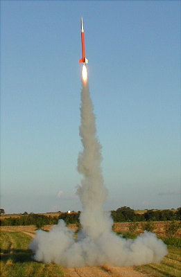 A pretty picture; the Aerobee climbs on a column of smoke and fire. This flight used an I211 White Lightning.