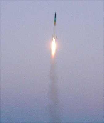 Spectra lights up the evening skies. Powered by a Kosdon J450, the high speed rocket provides a real photographic challenge.