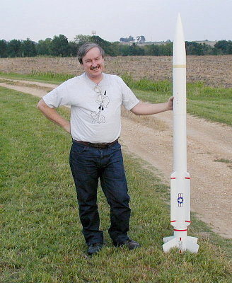 Charles poses with his Archer just before flight. Power was provided by an experimental ammonium nitrate motor.
