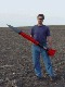Tom Montemayor also put up 3 flights, all successful. Tom started with his ancient North Coast Archer, powered by a core H165 Redline and two outboard D12s. Tom used slow fuse to light the D12s, and it was certainly slow. A few seconds after the H165 burned out, with the Archer just reaching apogee, one of the D12s fired. For a rocket this heavy, a D12 does nothing but make a little smoke. After deployment, with the rocket descending gently under parachute, the other D12 fired. Again, it didn't do anything but make smoke, but it did look neat! Next, Tom launched Stud Duck with a Kosdon I300 for a perfect flight and recovery. Finally, Tom brought out his LOC Bruiser, powered by a Kosdon J500. The 38mm 900ns motor lifted the Bruiser to 1,490 feet at a max acceleration of 8 Gs. Deployment occurred right at apogee for a perfect flight and recovery.