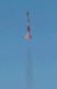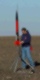 After putting up a glassed Estes Sidewinder on an F24, Mark brought out his all aluminum rocket, "Hang 4". Power would be provided by another homemade EX motor, a 38mm 9 grain motor rated as a J330. Both the rocket and motor had flown before, though not together. Dual barometric deployment would be provided by an AltAcc altimeter. The beautiful rocket was loaded on the rail, the usual countdown, the button was pushed, and the motor ignited for a few milliseconds. Unfortunately, it then overpressurized and split open, venting the excess pressure and destroying the bottom part of the rocket and the fin can. There was a significant boom associated with the failure. There was no shrapnel; the aluminum case and airframe split open and the rocket jumped about 20 feet in the air. The plastic fin can did shatter, and fin pieces were found scattered around the pad. No propellant grains were found. The photo shows many small pieces of debris in the air around the rocket. These were probably the remains of the propellant grains. We were all at a safe distance from the rocket so no debris reached the launch team.